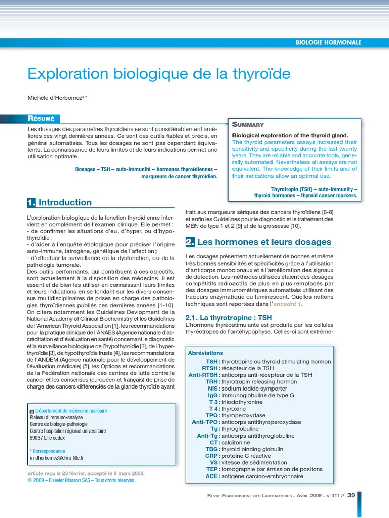 Leur dosage peut révéler un dysfonctionnement de la thyroïde ou une maladie par ailleurs, les normes changent régulièrement, prévient le dr magali cocaul andré, endocrinologue à paris.